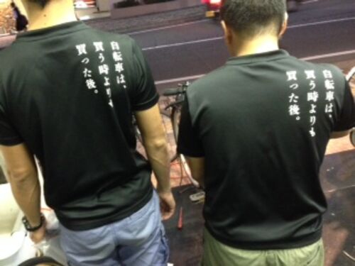 こんばんは! 営業さんが2015モデルの紹介やら、展示会の案内やら…で、 電話&来店で普段以上にバタバタしている毎日です…(^^ゞ ところで、サイクルセンターしものモットーってご存知でしょうか? スタッフTシャツにも書かせていただいておりますが、 『自転…