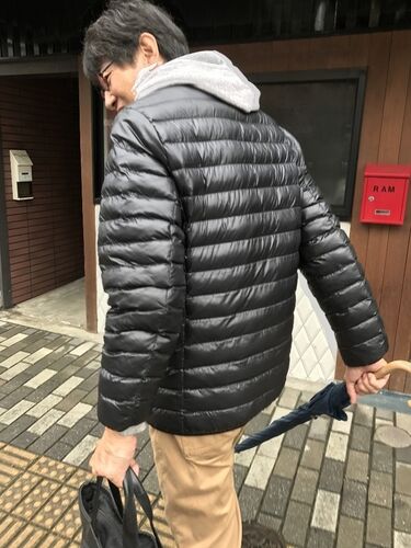 こんばんは~。 降りしきる雨、長続きしますねぇ…(^_^*) 明日も予報が雨なので残念ながら明日の物見山は中止とさせていただきます。 今日は、営業さんのM波さんがお越しになりましてが、こんな装いです。 もうダウンジャケットですかぁ。 あまり遠出もしない…