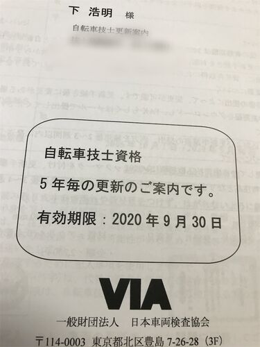 こんにちは。 お盆休み真っ只中であります。 連日の暑さと、コロナの影響で、どこにも出かけたくないなぁ…って感じです。 そうは言っても、やる事は多いわけでして…。 ↓ 自転車技士の資格の更新手続きをしなきゃ! 自転車技士制度は、 資格取得後も、自転車…