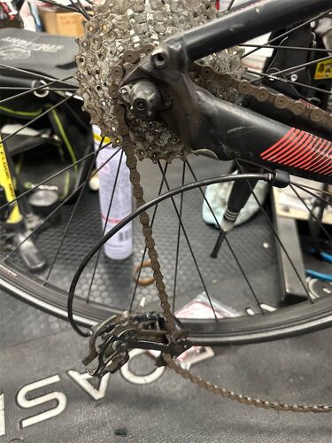 こんばんは 週間天気予報だと、もう梅雨がどっかに行っちゃって、いきなり30度の夏日ではなく35度の猛暑日がきてしまう感じですね…。 今年の夏はどうなることやら⁉️ さて、今日はこの状態でご来店のお客様 え~、これは。。。、 自転車を右側に倒した経験が…