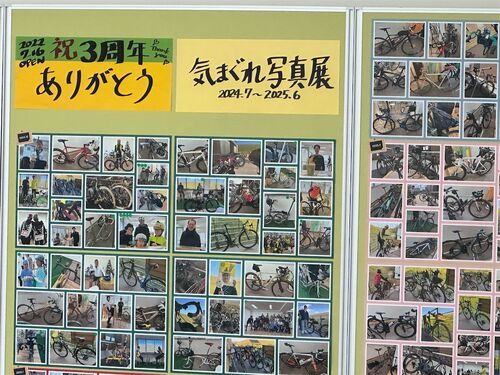 こんにちは! 先週よりは暑さも少し和らいでいるようですが、蒸し暑さがありますね…。 昨日のサイクリングは、秋ヶ瀬公園のKURUさんへ。 開店3周年ということで、来店した方々のお写真を撮ってくれてパネルにしてくれております。 3周年感謝くじ、ということ…